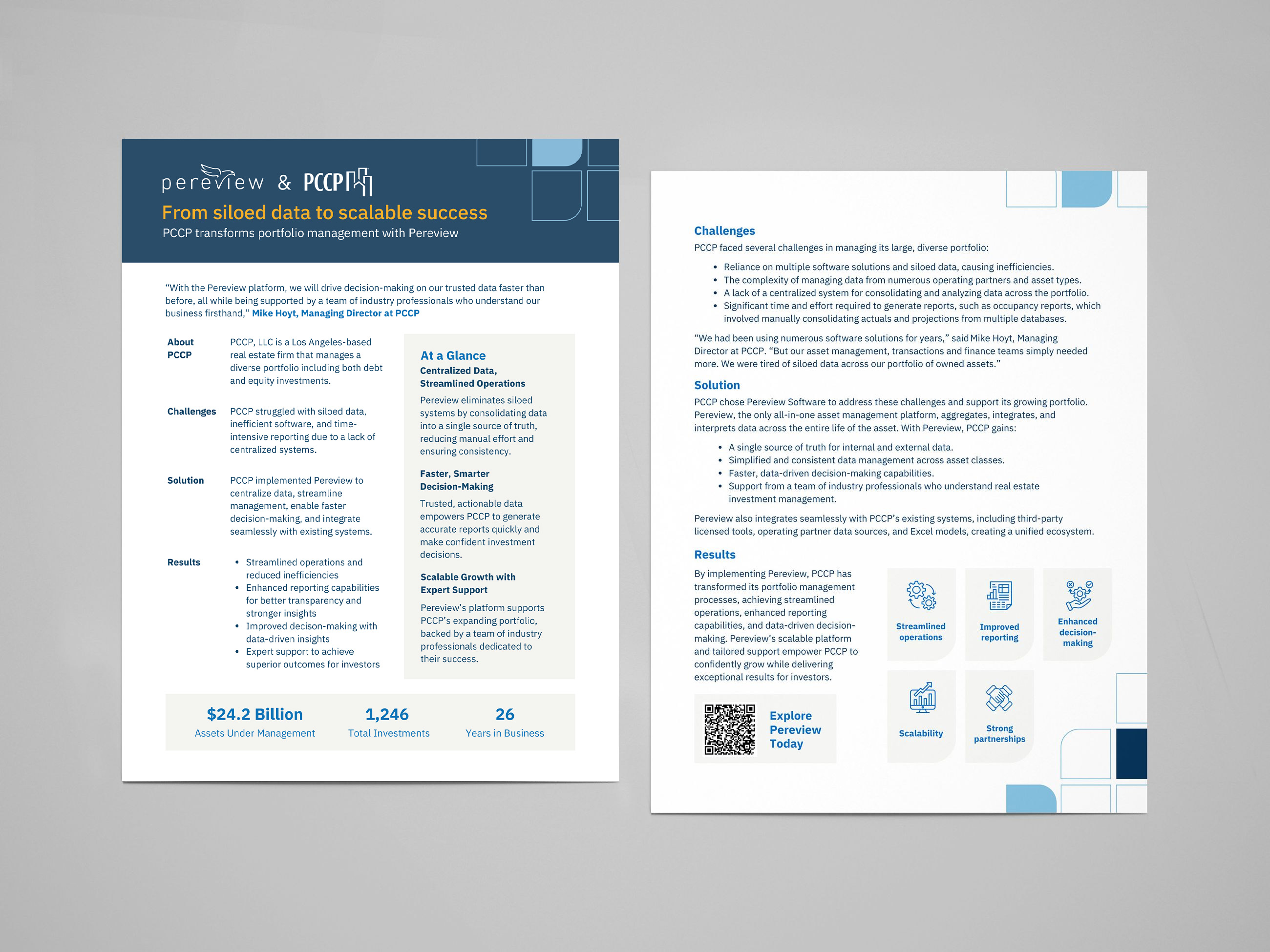 I led the design of a campaign that showcased how Pereview simplifies the challenges real estate managers and CFOs/CIOs face every day. Through before-and-after infographics, I illustrated the shift from disorganized processes to streamlined solutions, helping teams quickly understand the platform’s real-world impact and driving a noticeable increase in qualified leads.